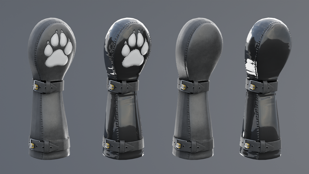 Unity package with the Mitts including easy VRCFury setup, texture and FBX files, blend file including raw high poly models, Substance painter files and blend file of the gumroad video render